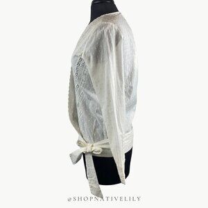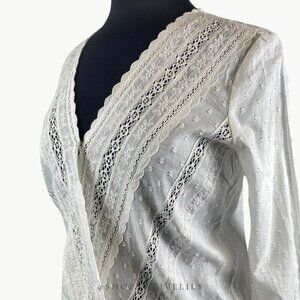 NWT Sézane Alessandra Eyelet Surplice Wrap Long Sleeve Blouse | Sz 38 (6) | White