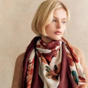 NWT Sézane Pio Scarf in burgundy, blush, cream Marie Print -