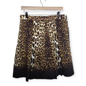 NWT T TAHARI JANE WOMEN'S SIZE 12 LEOPARD PLEATED LINED SKIRT ANIMAL PRINT BROWN