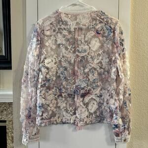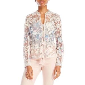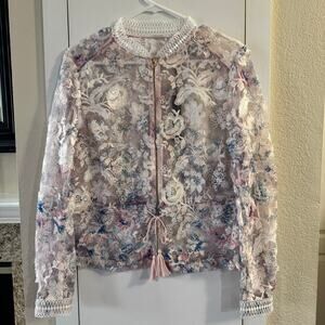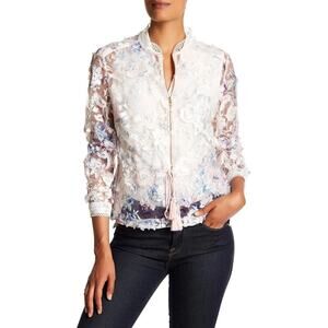 NWT T Tahari Mariah Lace Pink Floral Appliqué Full Zip Jacket Sheer Size Small