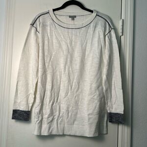 NWT T by Talbots Cream Perforated Sweater with Gray Trim Size Small