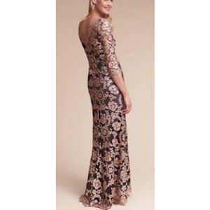 NWT TADASHI SHOJI Sequin Paillette Embroidered Lace illusion Gown Dress size 4
