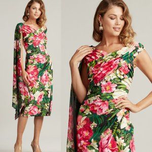 NWT TADASHI SHOJI Wyeth Floral Cape Chiffon Dress BTD22026M