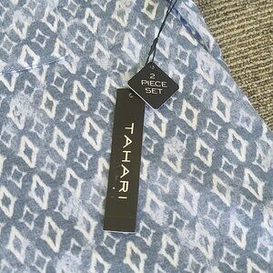NWT TAHARI 2 Piece Matching Pajama Sleepwear Set XL Blue and White Top and Pants