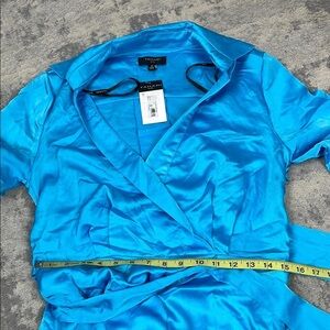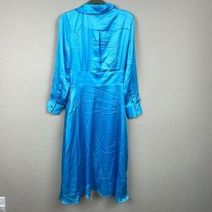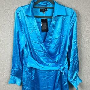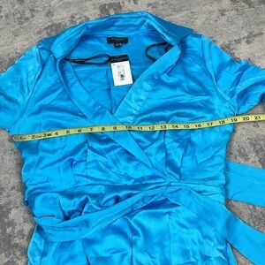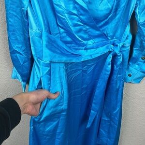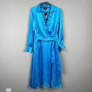 NWT TAHARI ASL Collared Midi Dress In Blue Faux Wrap Long Sleeve Sz 8