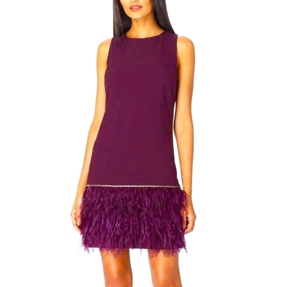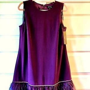 NWT TAHARI Arthur S. Levine Purple Feather Rhinestones Mini Cocktail Dress 12