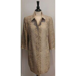 NWT TAHARI Calypso Coat in Stone Snakeskin Print 3/4" Sleeve Button Front Size M