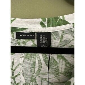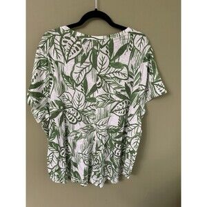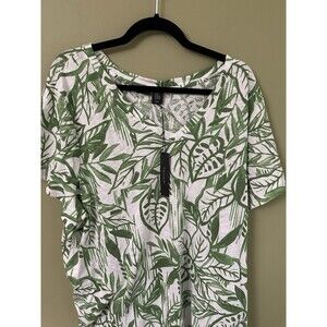 NWT TAHARI Top 100% Cotton Women Size 3X Floral V-Neck Short Sleeve Green White