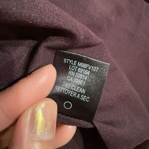 This is a NWT Tahari velvet swing jacket blazer in size 2. The jacket is a mid-length style with 3/4 sleeves and a snap closure. It features embroidered accents, a purple color, and is made of 77% rayon and 23% silk velvet. The jacket is designed with button accents, lined with shoulder pads, and suitable for parties, casual or formal occasions. It is perfect for the winter, fall, or spring seasons.
