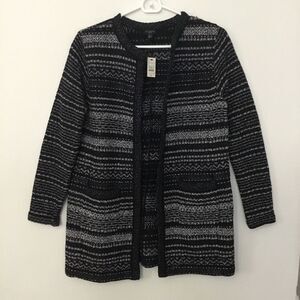 NWT TALBOTS Black Mixed Stitched Sparkle Sweater Coat Topper Petites size S. Condition is New with tags.