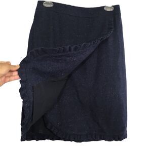 NWT TALBOTS DONEGAL SHETLAND RUFFEL WOOL BLEND SPECKLED NAVY WRAP PENCIL SKIRT 2