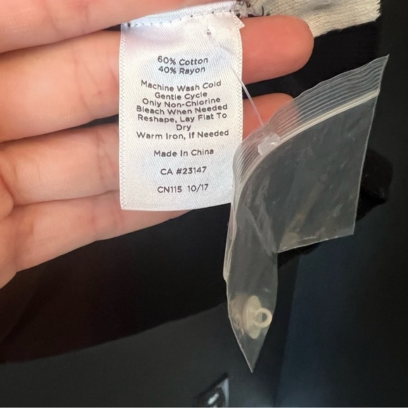 19" at the armholes, 23" long. A cotton/rayon blend, this pretty sweater has an original retail value of $89.50 and is new with tags.
