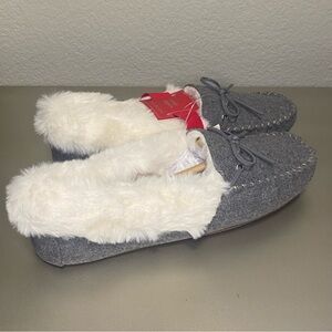 NWT TALBOTS RUBY BRUSHED FLANNEL MOCCASINS IN GREY - SIZE 8