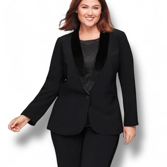NWT TALBOTS STRETCH CREPE TUXEDO BLAZER - Black Velvet 16W