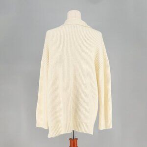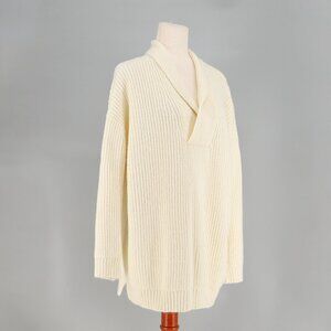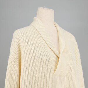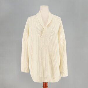 NWT TALBOTS Shawl Collar Shaker Stitch Pullover Relaxed Fit Ivory Size M