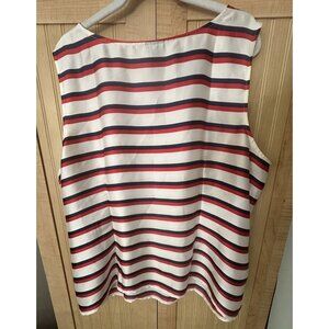 The NWT Talbots Woman Plus Rugby Multi Stripe Top Blouse in size 3XL is a colorful and stylish addition to any woman's wardrobe. This nautical, coastal vacation style sleeveless blouse features a boat neck neckline and a hip-length shirt, perfect for casual occasions. Made of polyester, this blouse from a trusted brand like Talbots offers comfort and quality, making it a great choice for any woman looking for a versatile and trendy top.
