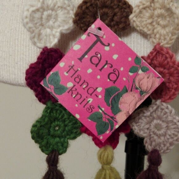 NWT TARA Handmade 100% Wool 3 Daisy Flower Crochet Boho Bohemian Scarf