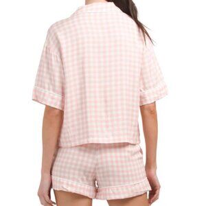 NWT TART Micro Pink Gingham 2pc Kine Top and Shorts Pajama Set with side Pockets