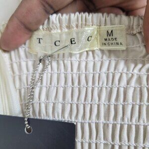 NWT TCEC Beige Strapless Belted Smocked Sweetheart Pockets Mini Dress Medium