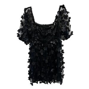 NWT TCEC Black 3D Floral Butterfly Short Sleeve Mini Dress Womens Medium
