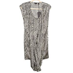 NWT TED BAKER Black & Silver 100% Silk Animal Print Cowl Short Dress SIZE 0 US 2