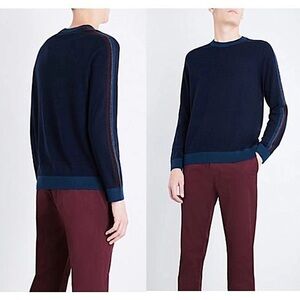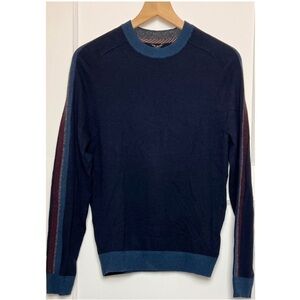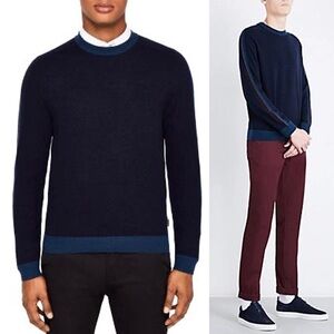 NWT TED BAKER Navy Wool Colorblock Striped Long Sleeve Slim Fit Sweater