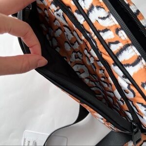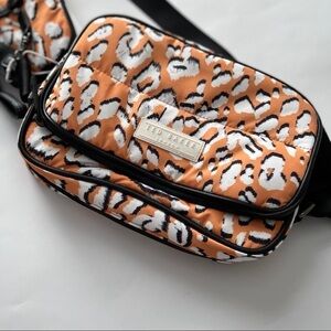 NWT TED BAKER Niqia Nylon Animal Print Orange Black Crossbody Bag w/ Attachment