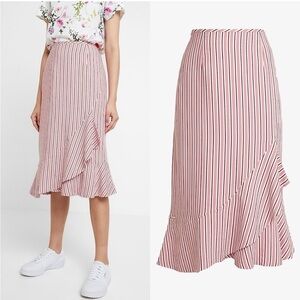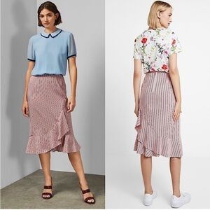 NWT TED BAKER Stripe Asymmetric Ruffle Faux Wrap Flounce Hem Midi Pencil Skirt 6