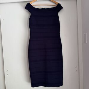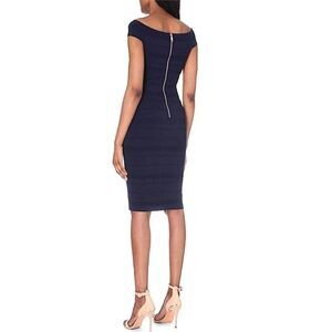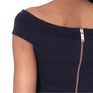 NWT TED BAKER Sz 4 US 10 Bardot Dark Blue Off Shoulder Striped Textured Bodycon Knee Length Dress