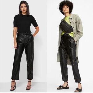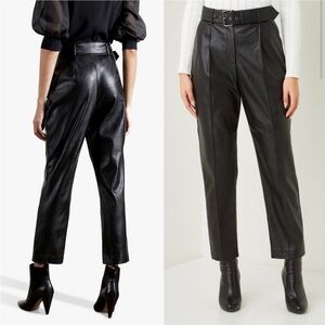 NWT TED BAKER Vegan Faux Leather Pleated High Waist Belted Ankle Crop Trouser 10