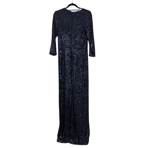 NWT TERI JON Rickie Freeman Sequin Sheath Gown in Navy - Size 10