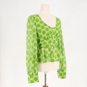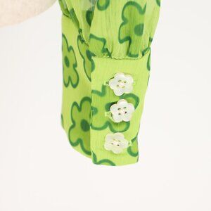 NWT THE EAST ORDER Retro Daisy Floral Peplum Blouse Lime Green Size S