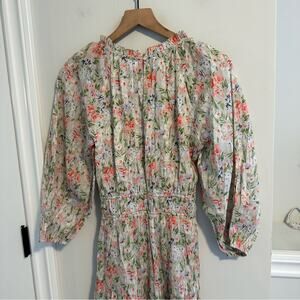 wow, I am so in love with this gorgeous designer new with tags THE GREAT. gray pink blue green floral cotton smocked long sleeve lined maxi dress
