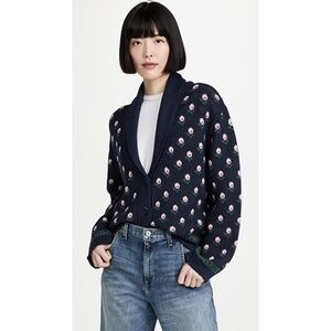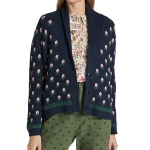NWT THE GREAT. The Bloom Lodge Alpaca & Wool Blend Floral Cardigan Sz. L
