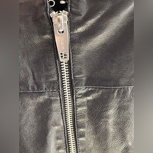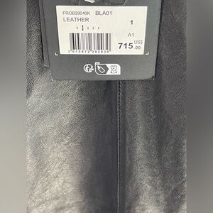 NWT THE KOOPLES Crossed V-Neck Sheepskin 100% Leather Black Mini Dress