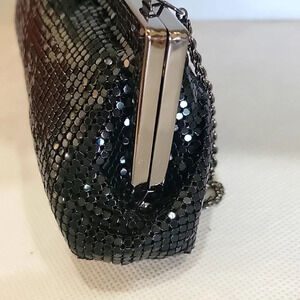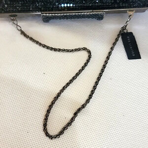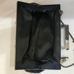 New with the Tag - A beautiful black mesh handbag with a chain strap. +There is a single compartment with a slide pocket. The strap can be put inside of the bag to create a clutch. Please see all pictures.