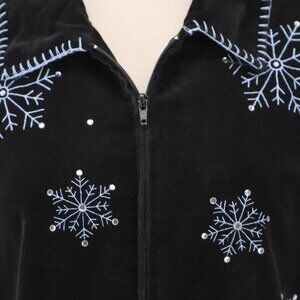 NWT THE QUACKER FACTORY Black Embellished Snowflake Velvet Vest Size 1X