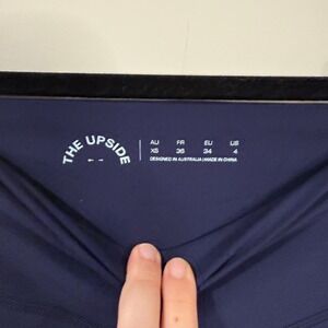 Keywords: The Upside, leggings, athletic, yoga, high waist, navy blue, red stripe, white stripe, workout leggings, activewear, XS, extra small, sportswear, recycled