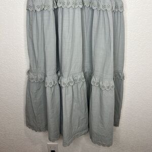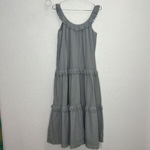 NWT THE GREAT Magnolia Ruffle Tiered Midi Dress Small Blue Gray