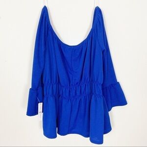 NWT THYME & HONEY Blue Off Shoulder Boho Blouse Medium Bohemian Top