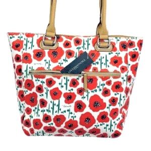 👜🌺 NWT TIGNANELLO Strawberry Poppy Tote | Red & Cream Floral Handbag |