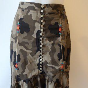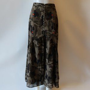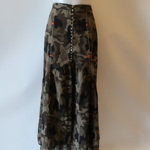 NWT TINA DEMEL CAMO ARMY GREEN MAXI SKIRT SIZE S*