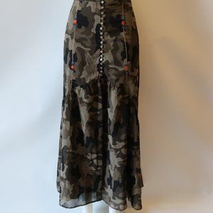 NWT WOMENS TINA DEMEL CAMO ARMY GREEN MAXI SKIRT SIZE S*