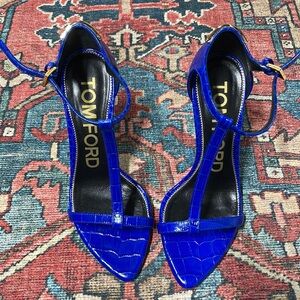 NWT TOM FORD Croc Iconic T 105 Sandal in cobalt size 36 / US 6