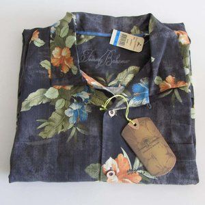 NWT TOMMY BAHAMA Palm Sketch SS floral pattern silk shirt XL