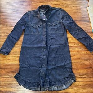 NWT TOMMY HILFIGER Dark Blue Denim Shirt Button Down Ruffle Hem Dress Size 8