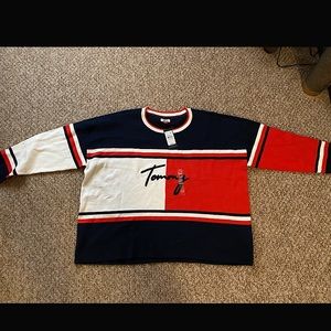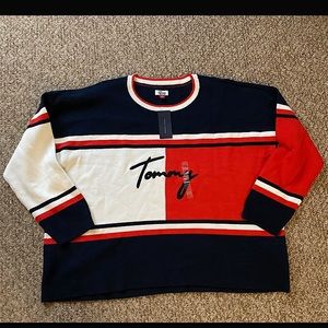 Size * XXL * but fits more like an XL Color block Tommy Hilfiger sweater, brand new with tags! Never worn, in perfect condition! (I bought as a size xxl intended to be worn oversized, but this is perfect to wear true to size as well! )