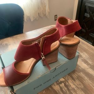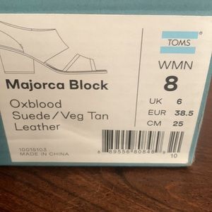 *NWT* TOMS -have never been worn and have no flaws. Majorca Block heels. Ortholite comfort foam insoles. Oxblood Suede/Veg Tan Leather WMN 8. Box is also included.