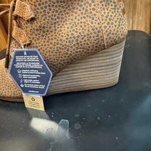 NWT TOMS Womens Cala Tan Mini Cheetah Suede Wedge Booties Size 6.5