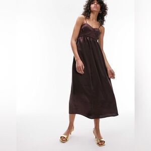 NWT TOPSHOP Corset Bust Satin Midi Dress In Chocolate-brown Size 10
